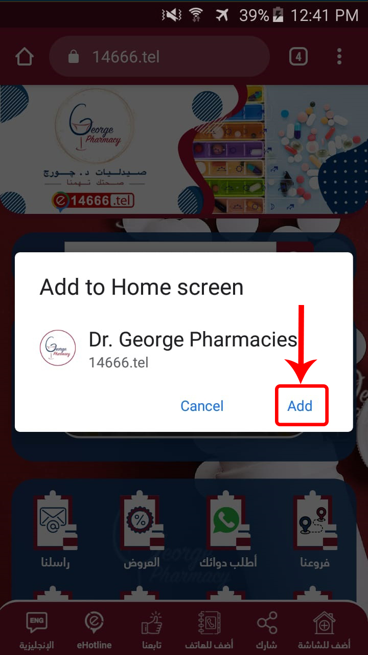 لأجهزة الآندرويد ... أضف للشاشة For Android ... Add to Home Screen
